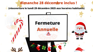 Fermeture annuelle du lundi 22 décembre au dimanche 28 décembre 2025