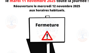 Fermeture exceptionnelle du lundi 10 et mardi 11 novembre 2025